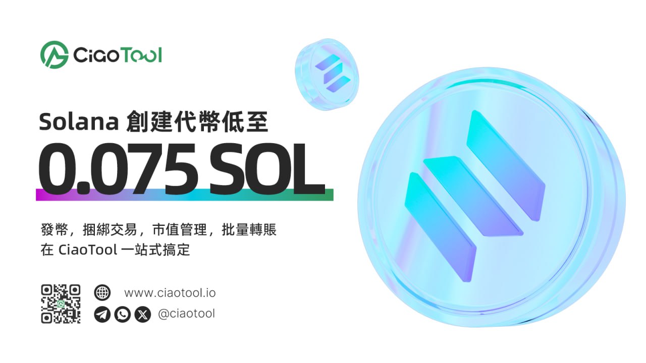CiaoTool 提供了另一种方式:在浏览器中即可完成 Solana 发币操作,起步成本低至 0.075 SOL,无需额外工具和环境配置,同时保持完全非托管的安全模型。