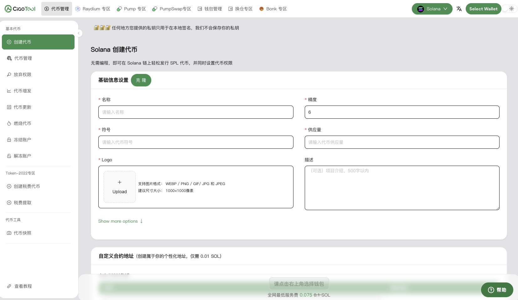 在 Solana 链上创建代币,对新手开发者来说可能有一定门槛。CiaoTool 提供免代码、一键发币的解决方案,让你轻松完成代币创建和管理。无论是初创项目,还是 NFT/GameFi项目,都可以快速上链并完成初始配置。